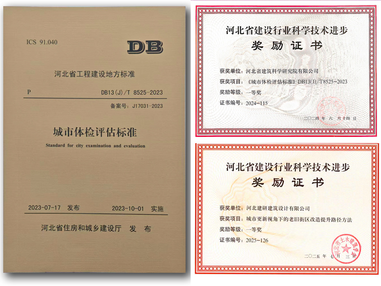 作为省厅推进全省城市体检工作的技术支撑单位,近年来该公司持续深化城市体检实践工作。自2022年以来,累计承接并完成了秦皇岛市、沧州市、遵化市、深州市、冀州区、正定县等20余个市县的城市自体检与省级第三方体检项目,实现了从指标构建、数据采集、社会调查到报告编制的全过程技术服务。在科研创新方面,主要完成了“河北省2022年城市体检指标体系”“河北省城市体检标准体系和政策体系研究报告”“河北省城市更新工作衡量标准”等一系列课题研究,形成了技术标准、研究报告与工作指南等系列成果。其中,《城市体检评估标准》及课题“城市更新视角下的老旧街区改造提升路径方法”,双双荣获河北省建设行业科学技术进步一等奖;作为参编单位完成的“河北省省级城市体检制度创新与实践探索”项目,荣获河北省优秀国土空间规划一等奖。这些成果为推动城市体检工作的制度化和规范化提供了河北智慧与实践样本。